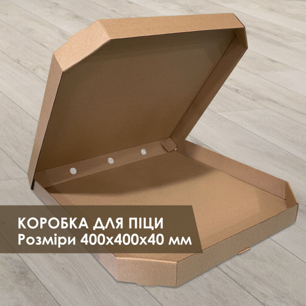 GFL-400_2-E-F-T23 4 Склад: Коробка для піци діаметром 40 см - ідеальне рішення для великих та родинних піц, які мають багато начинок і інгредієнтів. Ця коробка об'ємна, міцна і спеціально розроблена для збереження свіжості та смаку вашої улюбленої страви. Основні характеристики: Великий розмір: Діаметр 40 см дозволяє вам вмістити велику піцу з різними начинками та топпінгами, забезпечуючи найвищу якість подачі. Високоякісний матеріал: Коробка виготовлена з міцного та екологічно чистого харчового картону, що зберігає тепло та свіжість вашої піци. Легкий збір: Зручна конструкція дозволяє вам швидко та легко зібрати коробку для піци, готову для доставки або подачі. Екологічно стійка: Вона виготовлена з відновлювальних матеріалів та відповідає сучасним стандартам екологічної відповідальності. Підходить для всіх видів піц та всіх видів закладів, включаючи піцерії, кафе, ресторани та домашнє використання. Обирайте коробку для піци діаметром 40 см, щоб забезпечити найкращі умови для збереження смаку та свіжості вашої піци.